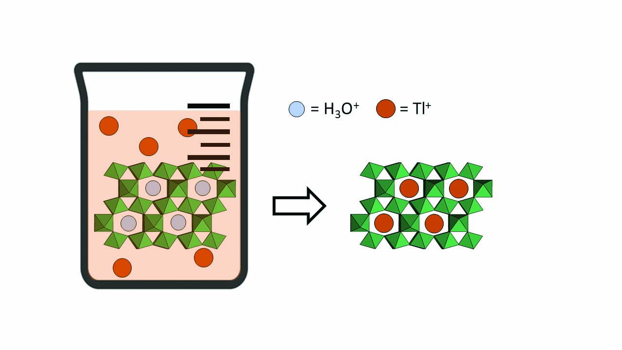 This study underlines the capabilities of the structure of hydropyrochlore to incorporate large amounts of Tl+ and, focusing on the structural variations subsequent to imbibition experiments in thallium-rich solutions, unequivocally demonstrates that this cation is not merely adsorbed on the surface of the crystal. As such, this research offers, although with some limitations, a versatile and promising solution for thallium sequestration and possibly the sequestration of other hazardous elements.