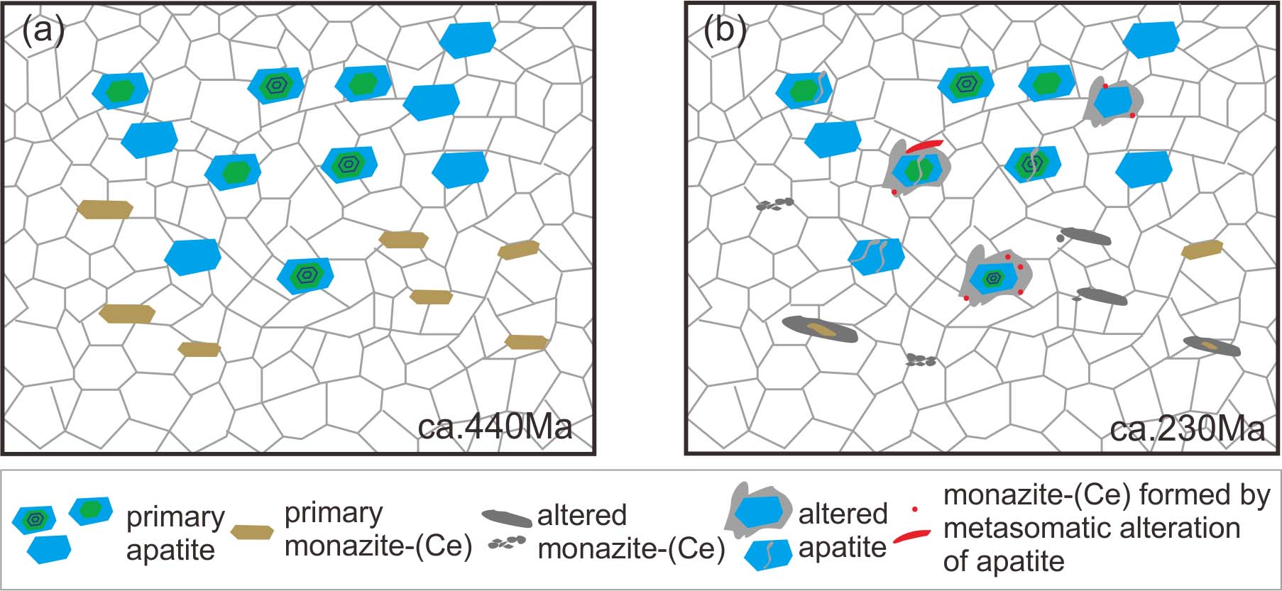Ma et al. conducted a combined textural and in situ chemical investigation on the REE mineralization in the ~430 Ma Miaoya carbonatite-syenite complex, central China. The results indicate that (1) REE-bearing fluorapatite and calcite were altered through a coupled dissolution-reprecipitation mechanism; (2) Fluids responsible for the REE remobilization were CO2-rich with medium temperature (227 to 340 C) and low salinity (1.42 to 8.82 wt%); and (3) Hydrothermal upgrading is an important tool for REE mineralization..